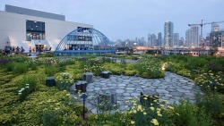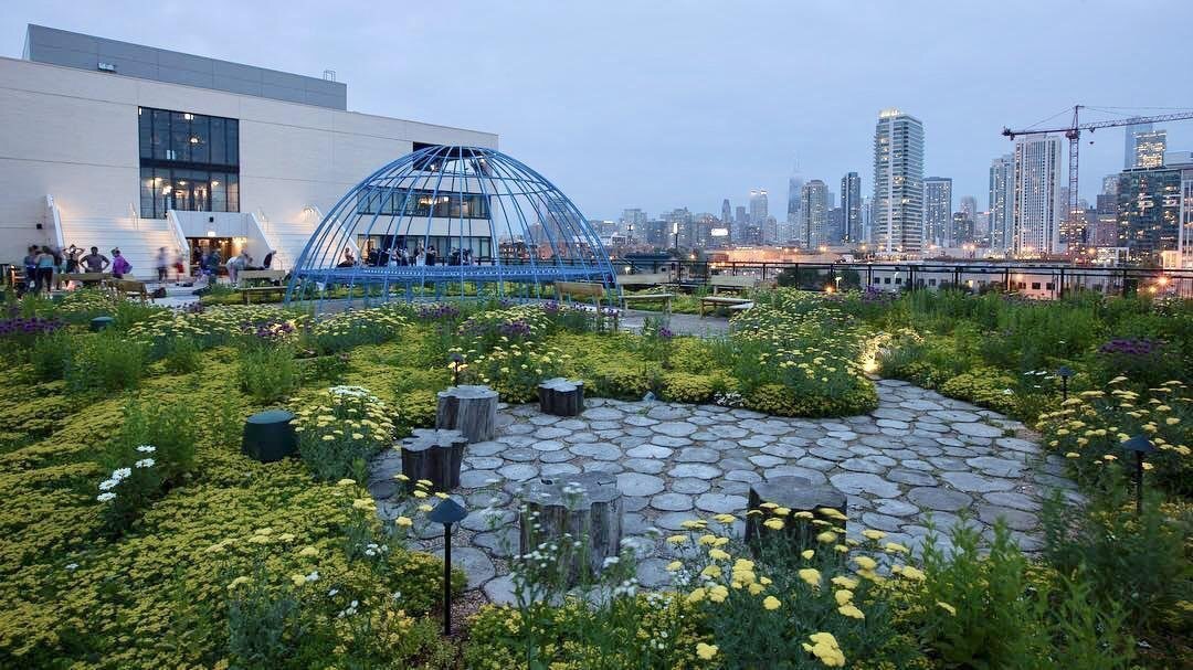 CHICAGO, ILLINOIS (January 25, 2019) The Ace Hotel is located in Chicago’s Fulton Market Historic District. It features 159 guestrooms and amenities including rooftop event spaces with stunning views of the city. The complex features several vegetative roofs, including a large fifth-floor terrace and a seventh-floor rooftop bar. The fifth-floor terrace incorporates a sculpture that visitors can climb on and areas that can easily adapt to host a variety of vents, from corporate meetings to yoga classes.