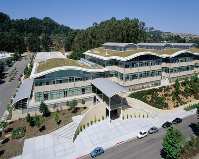 When Gap Inc. decided to build their first company owned office building, they wanted the facility to embody the company's commitment to the environment. By incorporating a green roof into the design of 901 Cherry, the architects dramatically improved the building's energy efficiency and reduced the demand on local storm sewers. In addition, the presence of native grasses and wildflowers on the roof helps the building blend with the surrounding landscape.