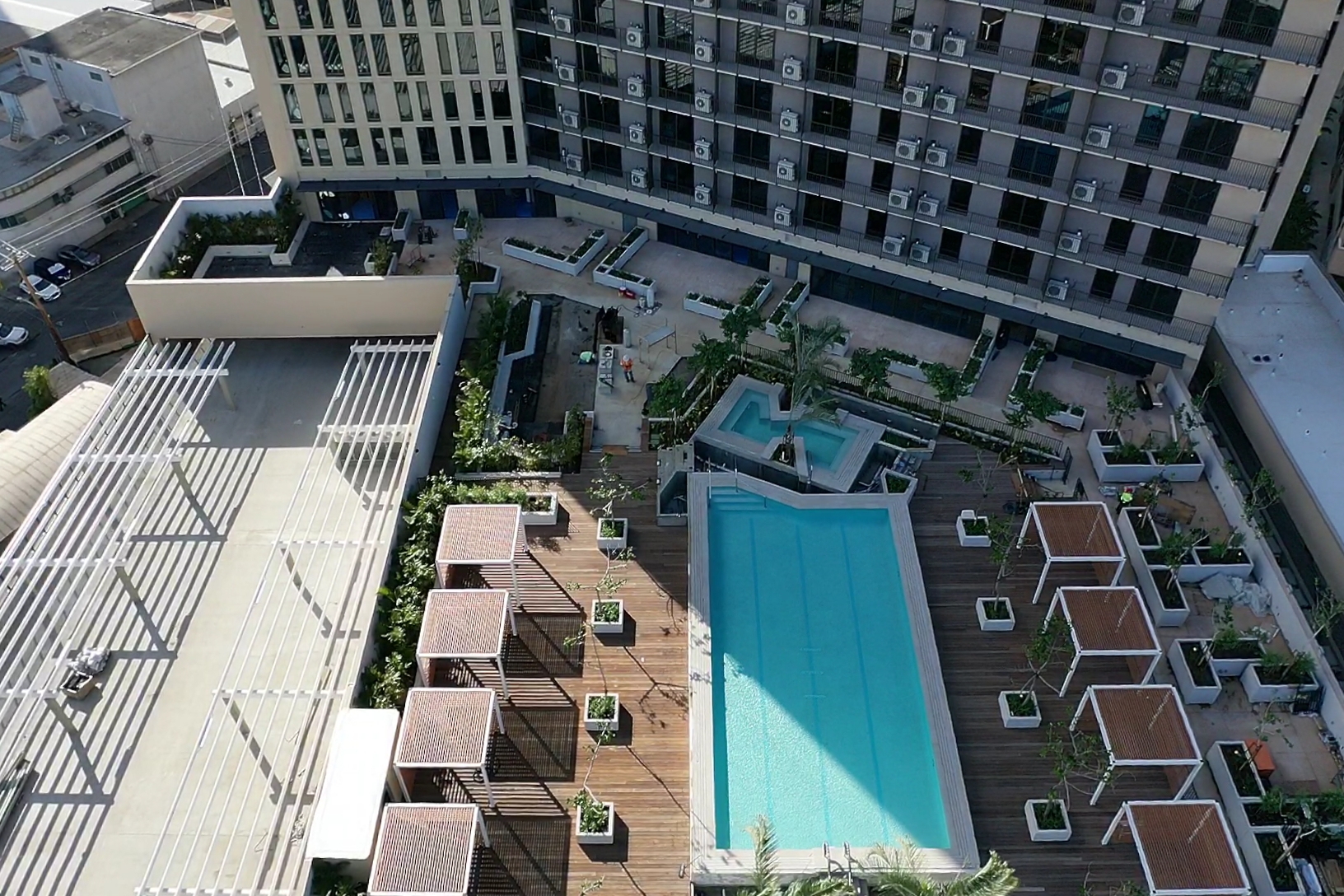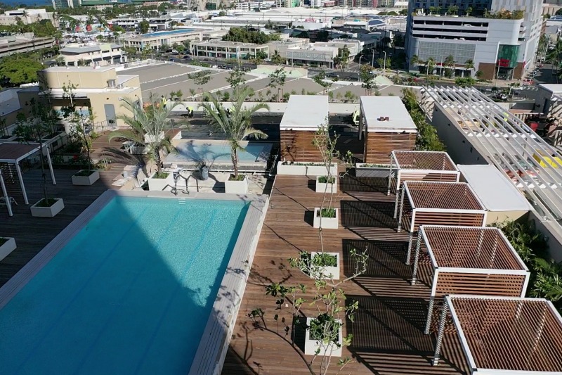 The islands in Hawaii often see short, daily rain events, so it is important to use a waterproofing membrane with a proven track record that will last the life of the structure. For these reasons, ‘A’ali’I Ward Village used MM6125® as its waterproofing membrane of choice. With the membrane adhered directly to the roof substrate, designers had the flexibility to create an amenity space that includes planters, pools, lounge areas, and more.