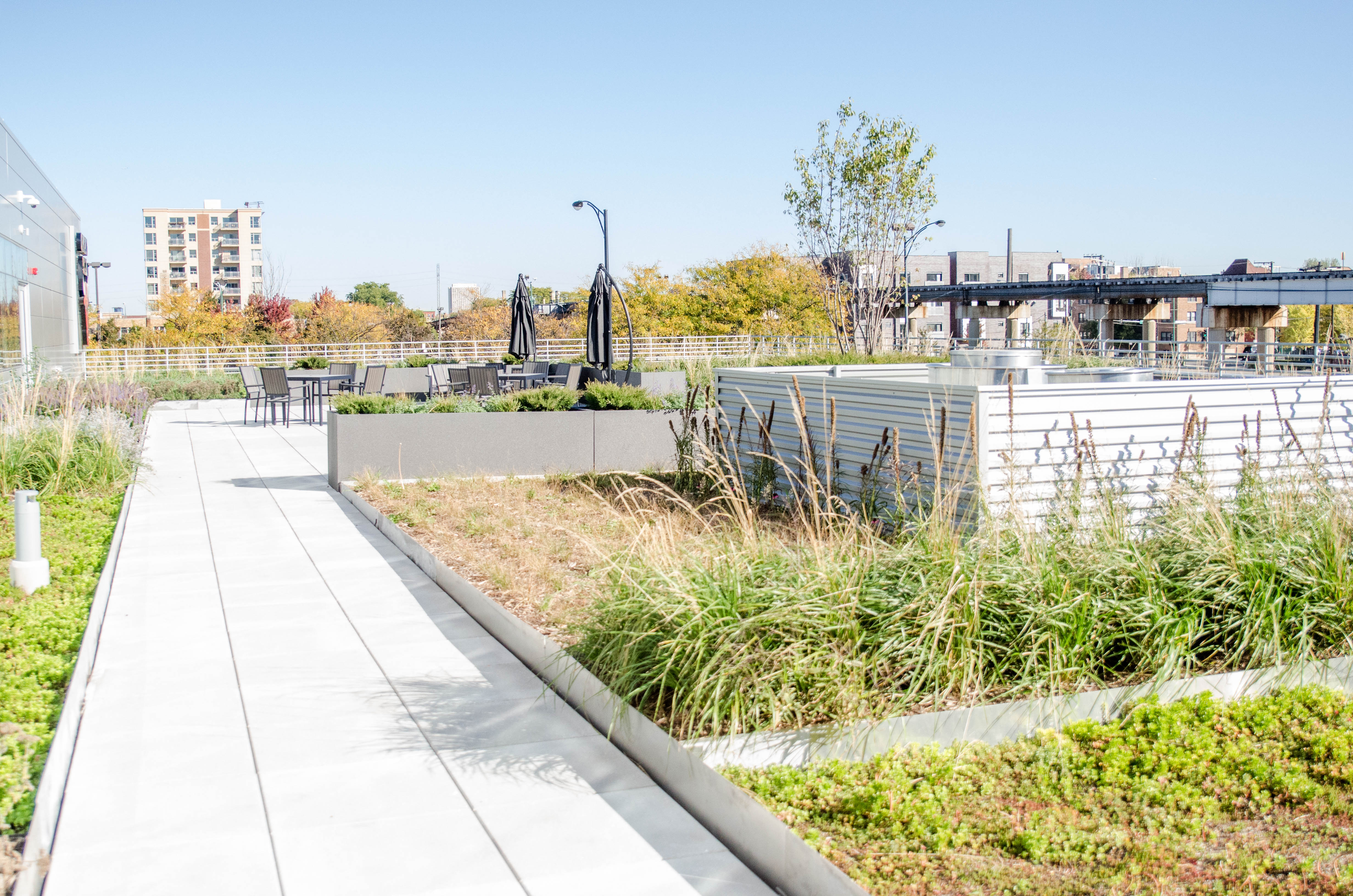 The second floor of the Advocate Center features an 11,000 SF green roof, boasting American Hydrotech Garden Roof and Ultimate Assembly technology. More than 1,800 SF of Hanover Architectural pavers and regional media were used to deliver sustainable benefits and on the amenity deck.