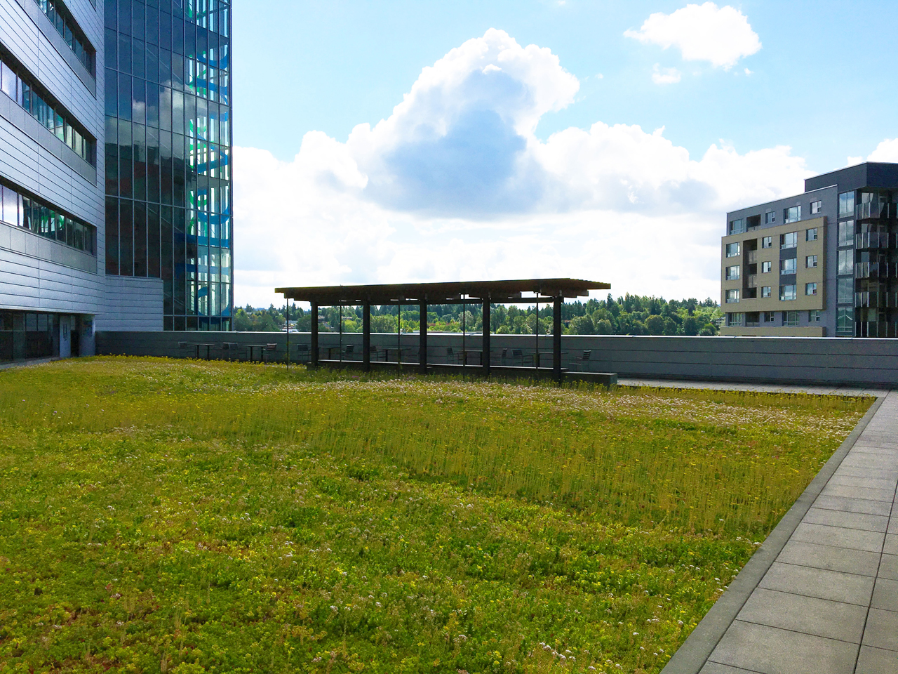 In August 2015, the city council received a $90,000 King Conservation District grant and determined it an opportunity to continue City Hall enhancements. After performing a number of weather and water tests in partnership with American Hydrotech, architects and contractors, the city council and facility managers determined an update from ballast to vegetative, green roof would not only slow down and filter rainwater that would otherwise flow directly into the storm drains, but also reduce heating and cooling costs.