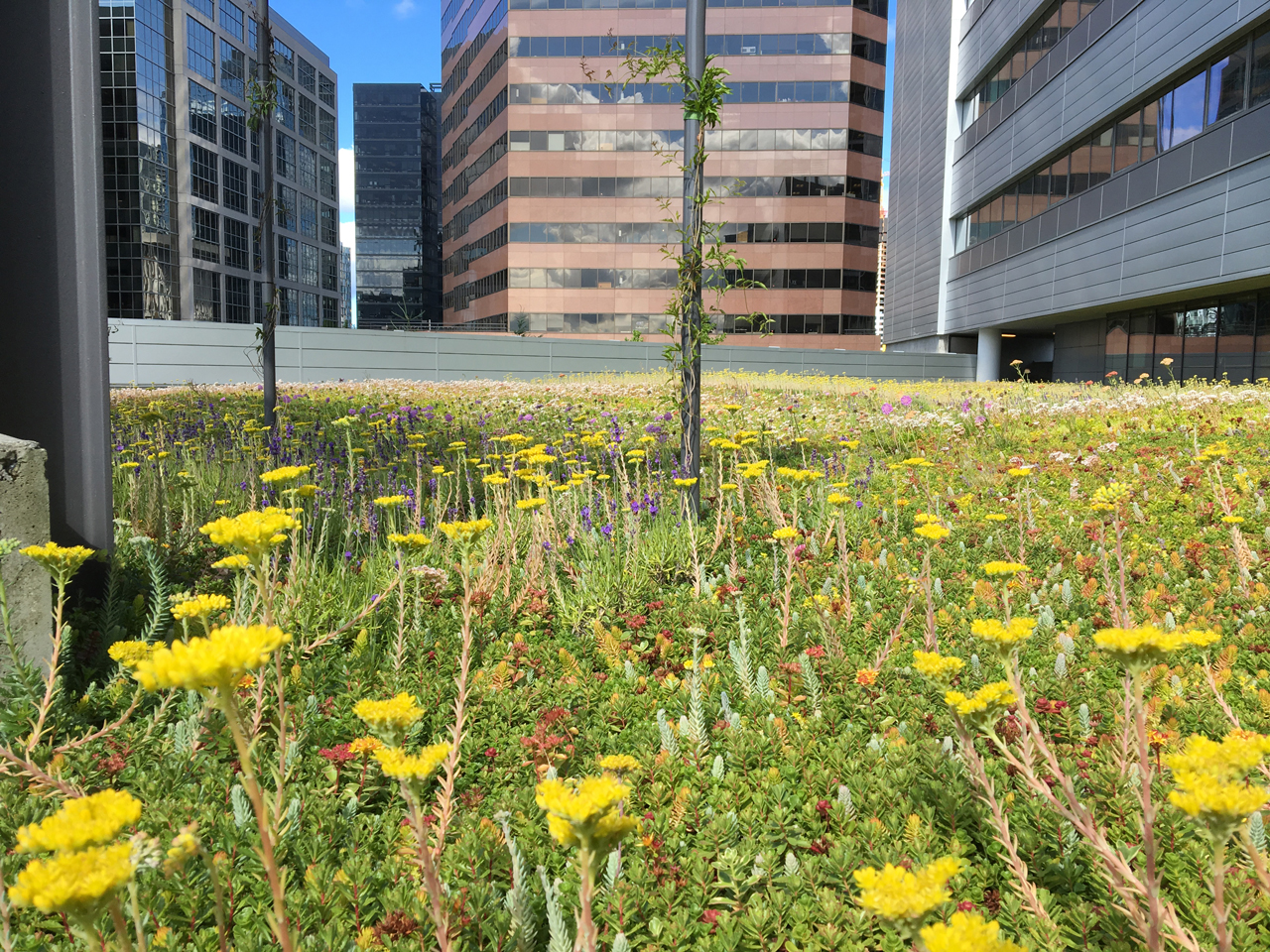 Given the flexibility of the roof components for future enhancements, contractors were able to quickly remove all old gravel ballast, styrofoam and other materials, replacing them with new insulation and an American Hydrotech Garden Roof assembly.