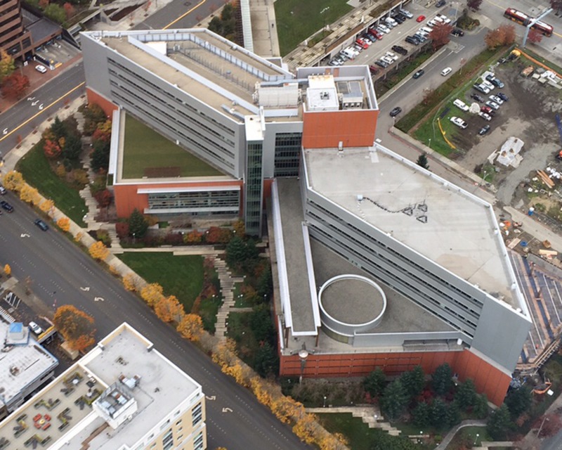 Washington State has always been considered a pioneer when it comes to adoption of greener and more sustainable practices. One of the most sustainable practices is to reuse an already constructed building without causing new footprint and look to enhance that building from within to make it up to today’s green standards. In 2002, the City of Bellevue, Wa., sought out to consolidate all functions under one roof, however, doing so would require additional space as it had outgrown its existing City Hall structure. The city decided to save $50 million on new construction costs and purchase an existing 227,000 sf office building at 450 110th Avenue, formerly occupied by Qwest.