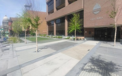 In 2004, architectural firm SRG Partnership began modifying the heavy-duty concrete structure, including seismic upgrades, new facade, a heating plant and enhanced power distribution. Teams also installed a new, modest gravel ballast-covered roof with American Hydrotech’s MM6125 waterproof materials. All immediate enhancements to the refreshed, new City Hall structure would be funded by taxpayer dollars over a multi-year period.