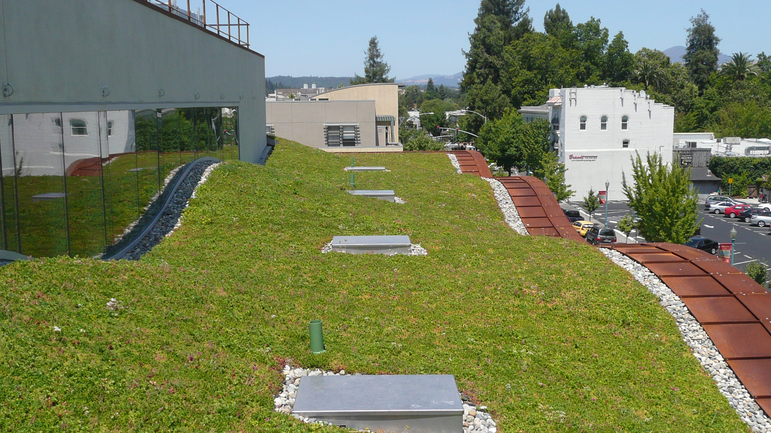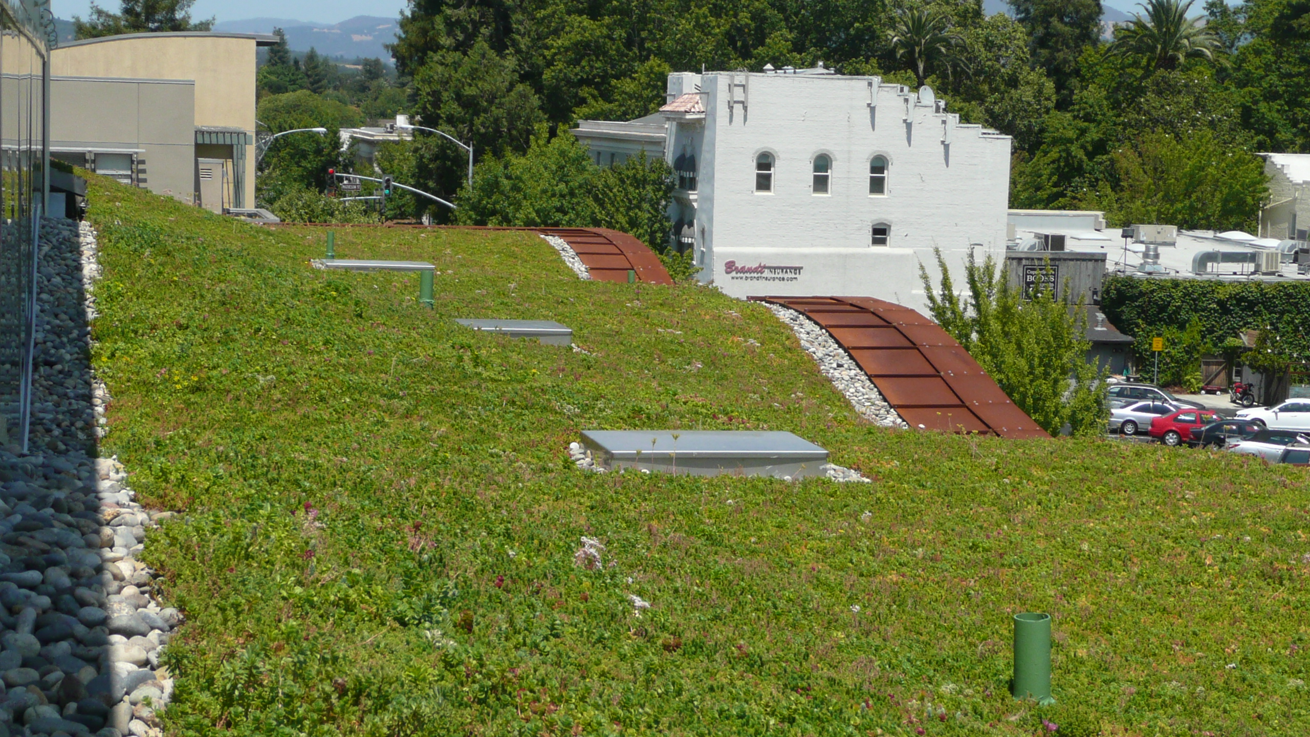 2009Designed with an eye towards minimizing its environmental impact, the h2hotel in Healdsburg has created an entirely environmentally friendly building. One of the many green components of the building is a vegetated roof that helps reduce and filter rainfall that would typically end up in storm drains or the neighboring Foss Creek. GardNet was used to create a green roof on a complex sloped roof. Find more information on the sustainable features: http://www.h2hotel.com/green/