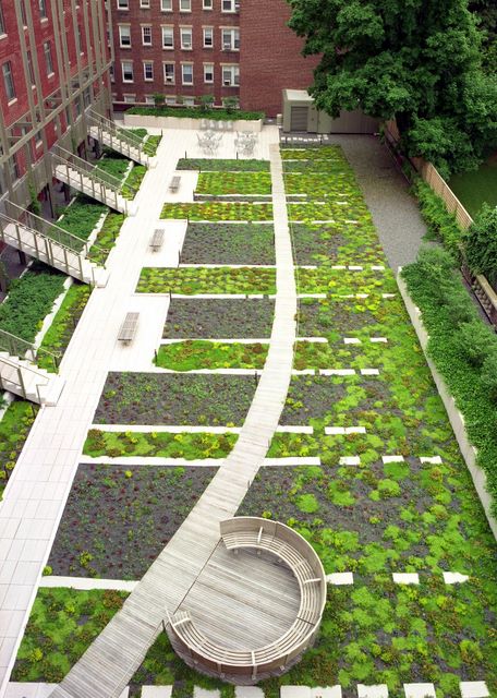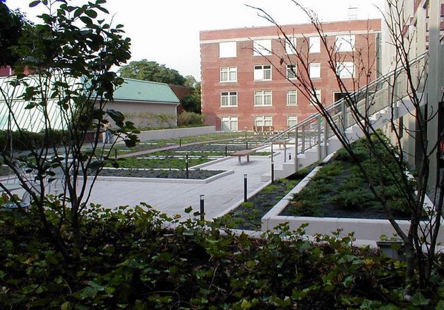 When representatives from Jonathan Levi Architects made their initial site visit to Harvard 29 Garden Street (an 80-year-old, nondescript building they were commissioned to redesign into housing for 143 students), one of the first items identified for change was an unattractive blacktopped roof over a one-story parking garage. Because all of the building's units looked out onto this roof, the architect proposed to capture this space aesthetically.
