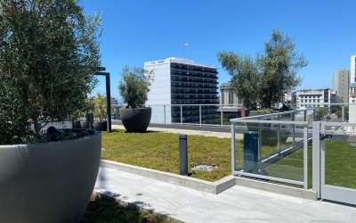 2020The Jasper is a mixed-use development located on the waterfront in Charleston, South Carolina. Along with an array of first-class amenities, the building’s 12-stories offer stunning panoramic views of the downtown area and Ashley River. One of the building’s main features is the rooftop oasis, known as the Star Deck. This amenity deck is home to a 32,000 square foot Hydrotech Ultimate Assembly®, kept watertight by Monolithic Membrane 6125®. RockCurb precast concrete curbing units were utilized to create landscape areas on this roof, a nice complement to the deck’s architectural pavers.