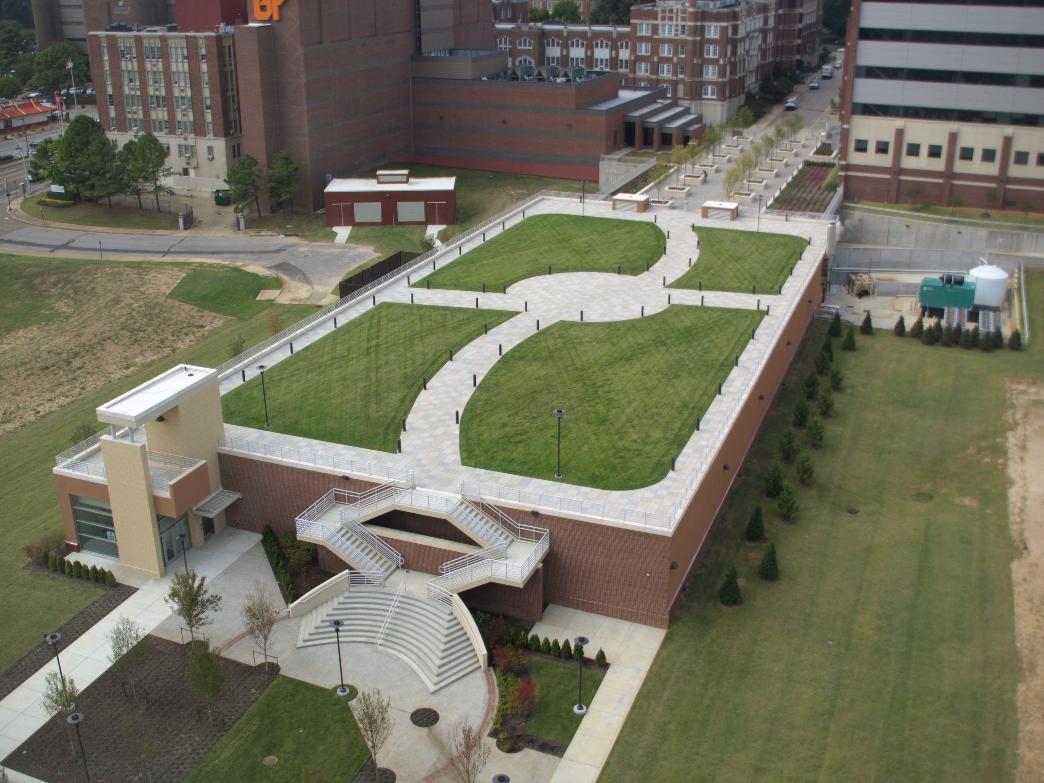 2012The Memphis Bioworks Foundation in Tennessee features an impressive outdoor gathering space completed with the Garden Roof® and Ultimate Assembly ®. The building was designed as a Protected Membrane Roof because of the benefits and advantages over conventional roofs, such as increased roof life span (more than 2x longer), reduced storm water runoff, lower costs for heating and cooling, and more.