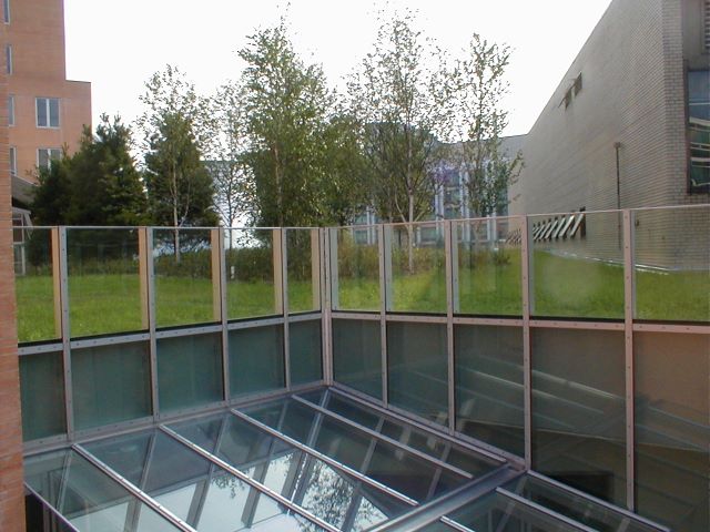 It's not a garden roof, according to its designers (Olin Partnership in collaboration withGehry Partners), but rather a "raised garden" or, more technically, "an open, cast-in-place overstructure that's been landscaped." But regardless of its classification, it provides a pleasant transition between the campus walkway, located at grade, and the upper entries into the center's two primary buildings. It also constitutes an important addition to MIT's community infrastructure.