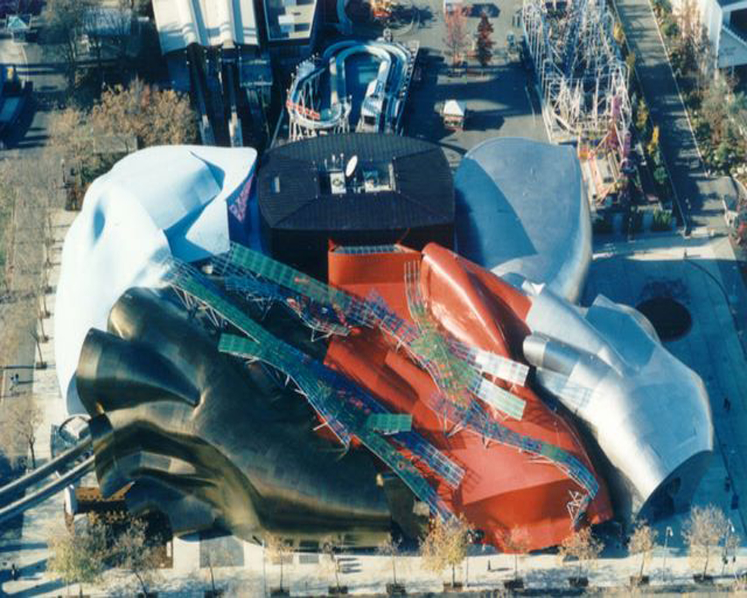 Gehry's design for Experience Music Project has been described in terms not typically associated with architecture - words like “visceral” and “organic”. Paul Allen and his co-founder Jody Patton coined the term “swoopy” to describe the structure’s candy-apple colored curves.