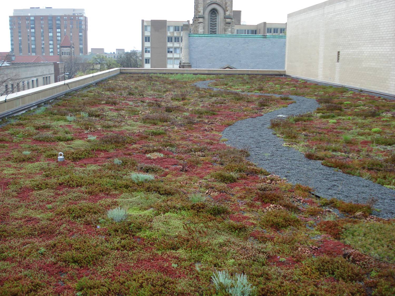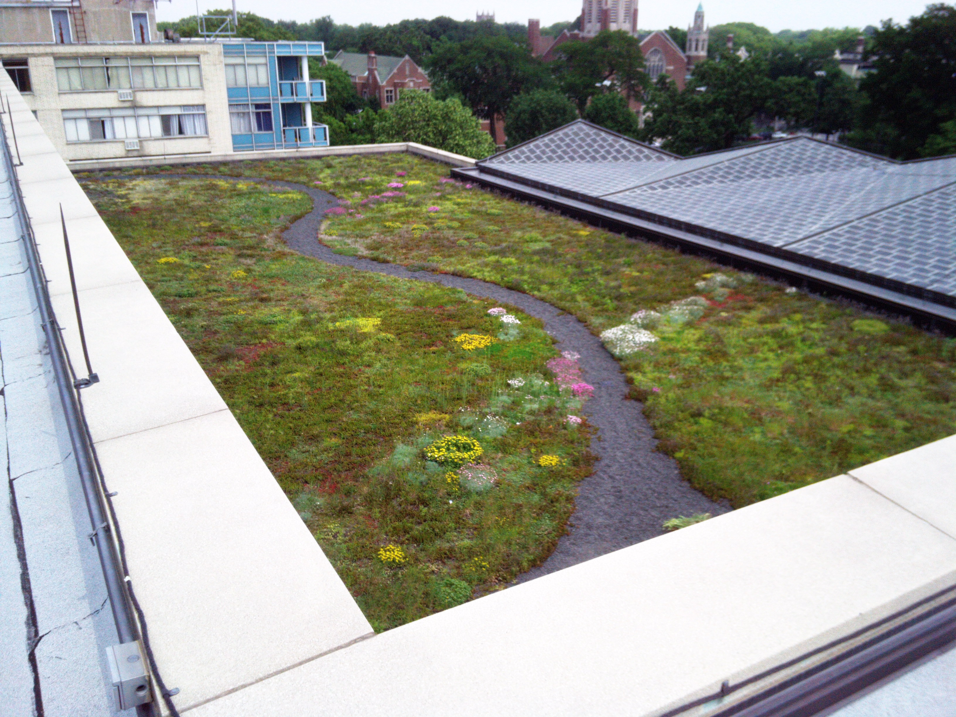 Keeping with the building's sustainability goals, Oak Park Library's Garden Roof requires minimal maintenance, generates energy efficiency benefits, will extend the longevity of the roof's waterproofing membrane, and reduces annual storm water runoff by an estimated 50 to 75 percent. The roof will also contribute to better air quality in this architecturally historic neighborhood.