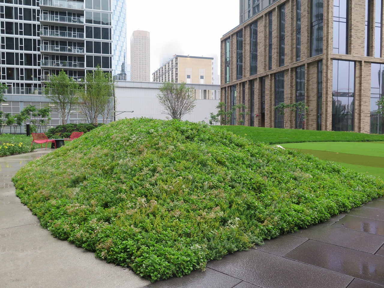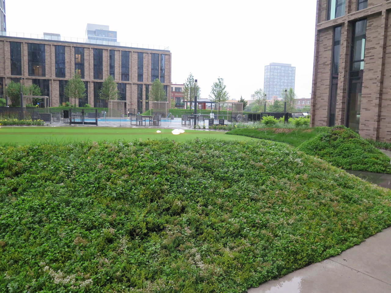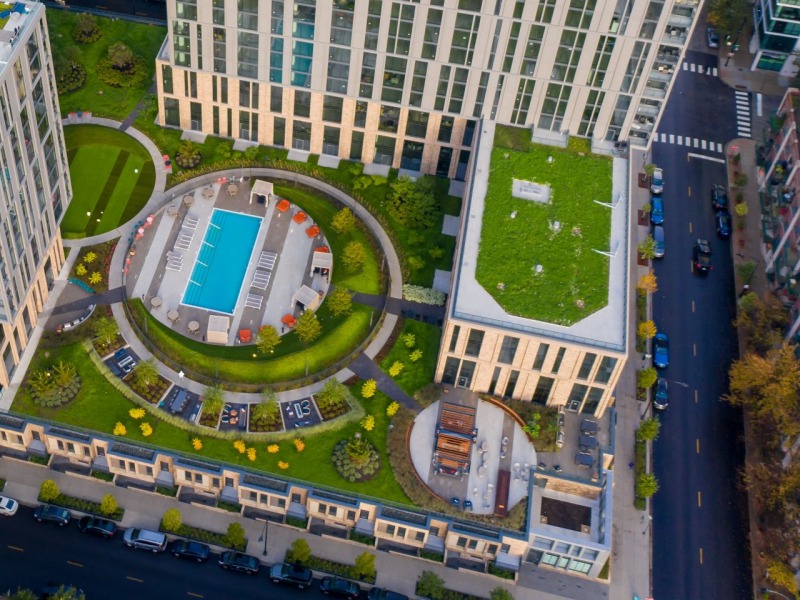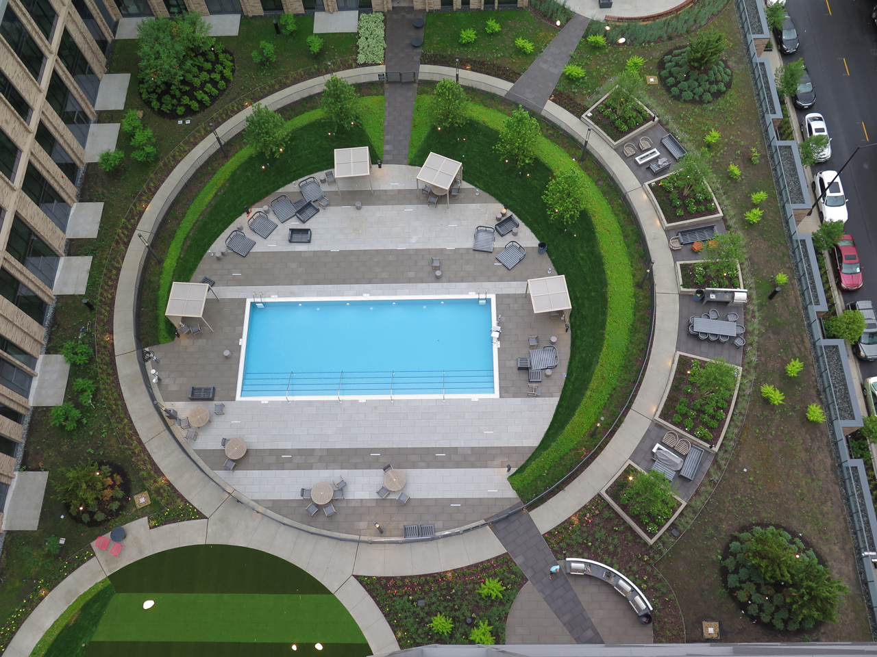 2020Porte is a state-of-the-art, multifamily residential development comprised of two towers and a shared podium deck occupying an entire city block. The design of this space focused on creating a sense of community and placemaking. The podium deck features a plethora of outdoor amenity spaces to bring people together including fire pits, a swimming pool, and grilling stations. With well over an acre of green space, Porte also offers tenants direct access to outdoor space that was perfectly suited for Hydrotech’s Garden Roof Assembly and kept watertight by Monolithic Membrane 6125.