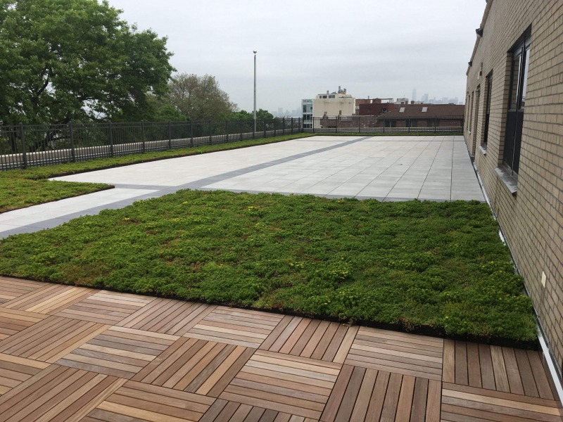 2019In 2019 Xaverian High School in Brooklyn saw the addition of an accessible roof with a mix of Ultimate Assembly® (concrete pavers and wood tiles) and Garden Roof® Assembly (InstaGreen® GT-4 modules) all built on top of a watertight roof sealed with MM6125®.